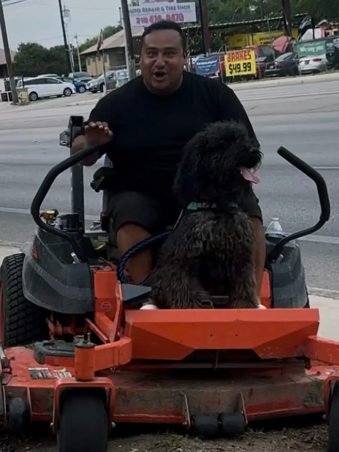John Aguilar is not in the habit of riding his lawnmower through the streets of San Antonio, Texas. But one day in July, he found himself doing just that — with his dog at his feet and a huge smile on his face.